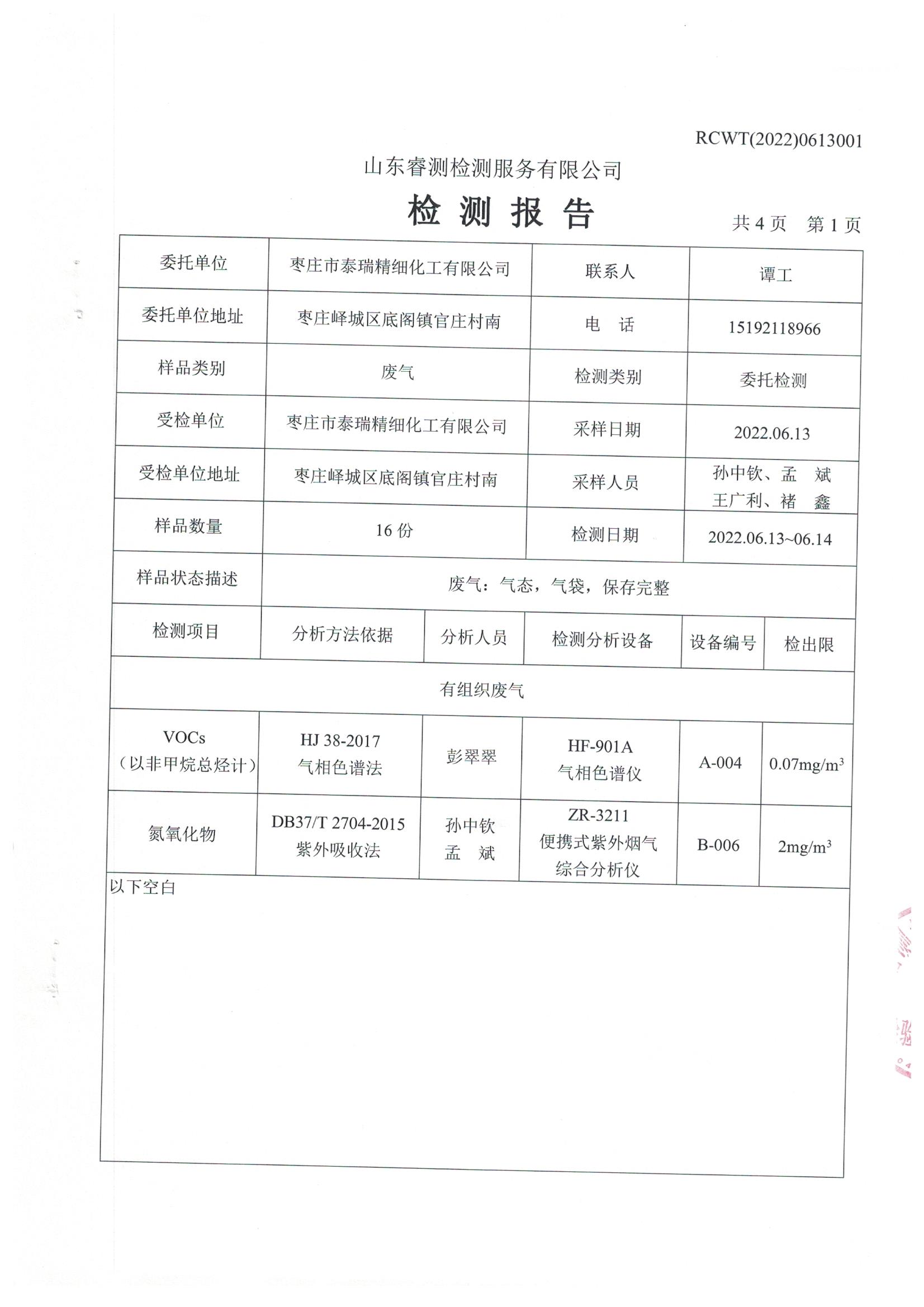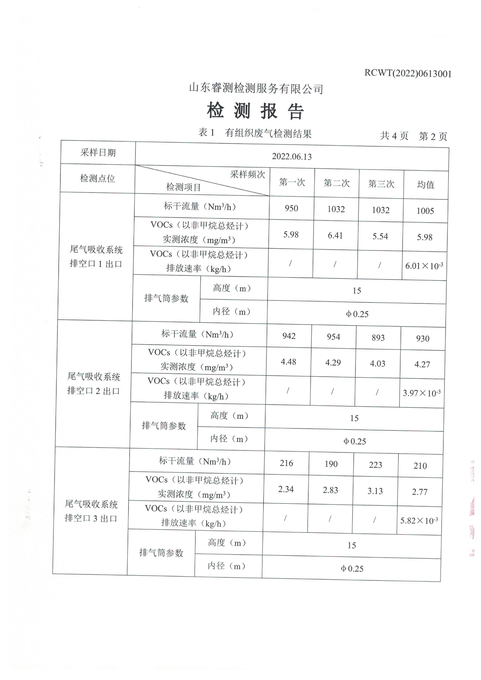 2022年6月份環(huán)境檢測報告
