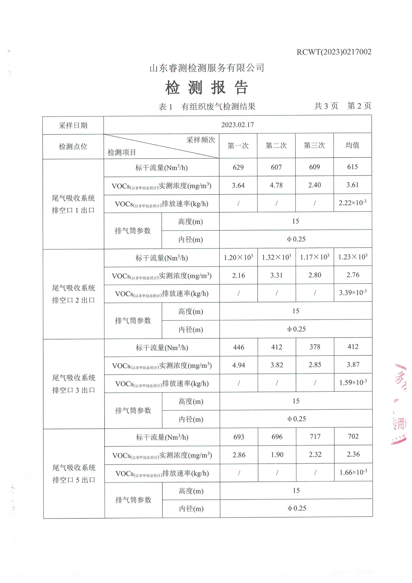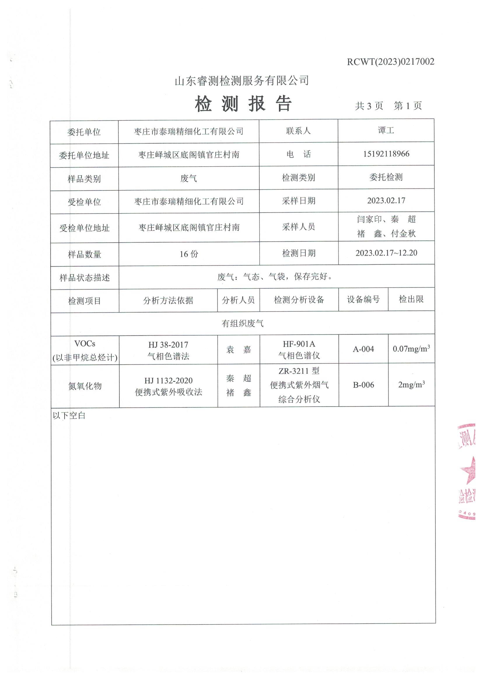 2023年第1季度檢測報告
