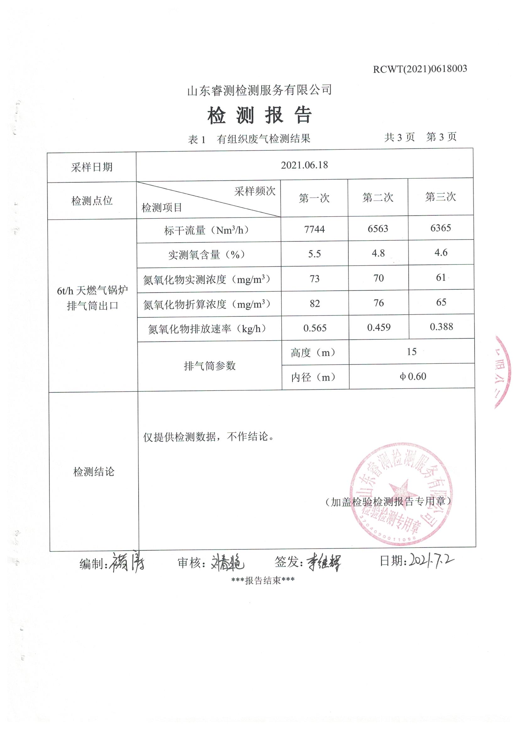 2021年6月份自行檢測報告