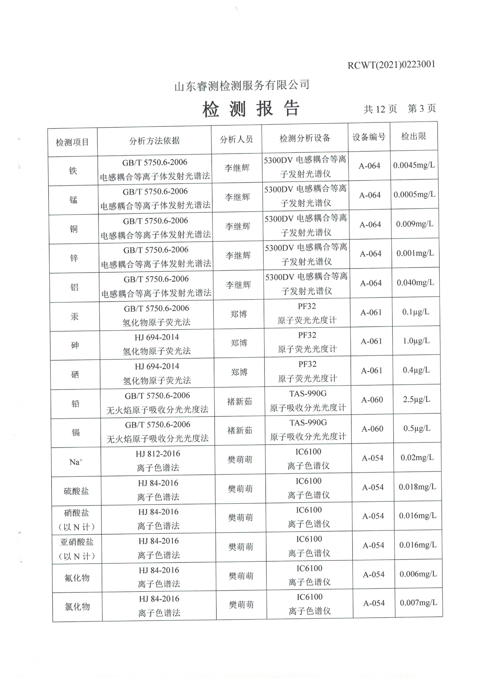 2021年第一季度自行檢測(cè)報(bào)告