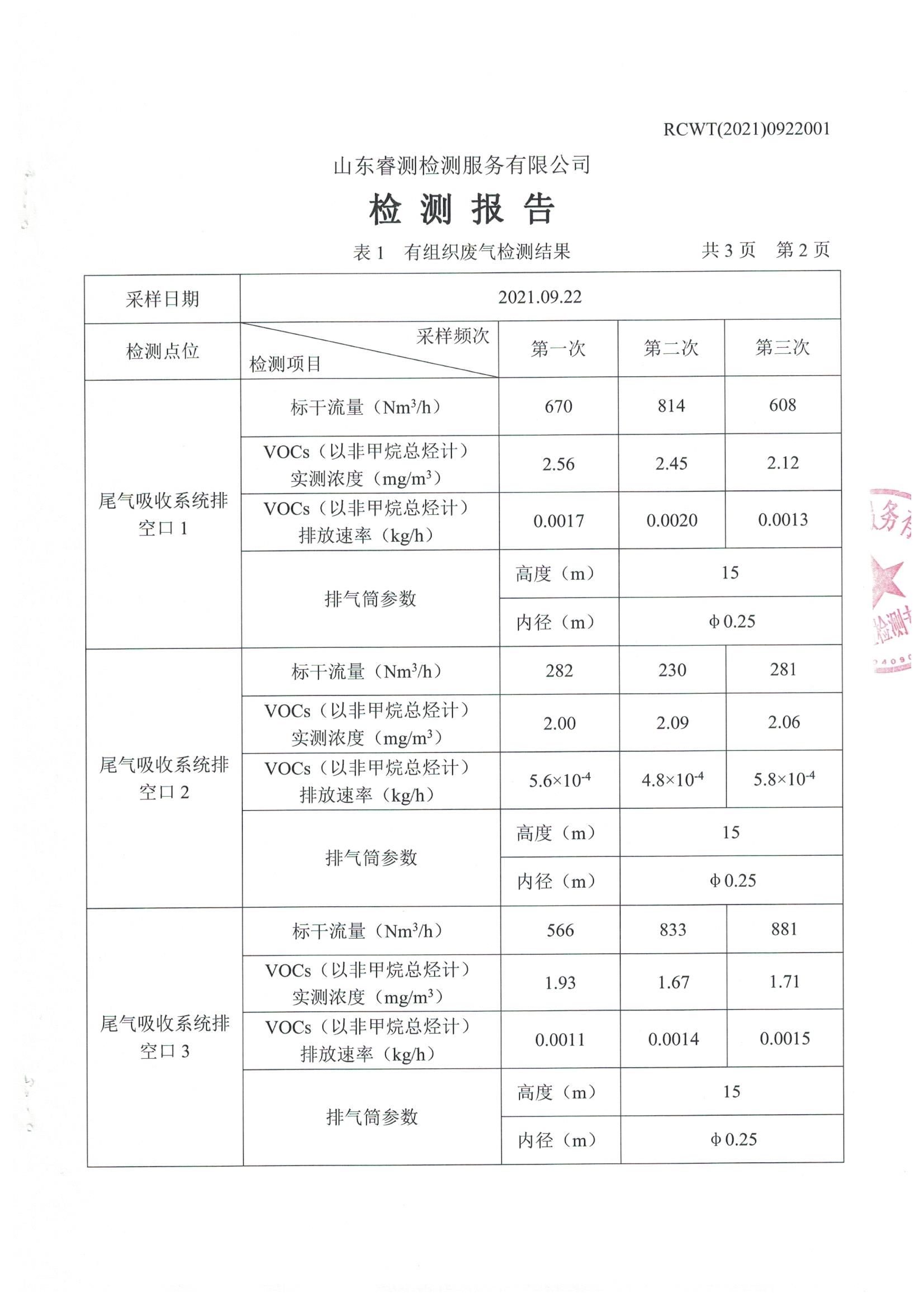 2021年9月份自行檢測報告